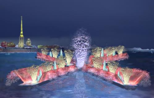 Такой -же фонтан может быть выполнен и на понтонах, а при необходимости транспортироваться с помощью буксира. Здесь представлены только некоторые из выполненных эскизов. Следует сказать, что возможности таких Светомузыкальных фонтанов на реке, при творческом подходе, почти не ограничены.