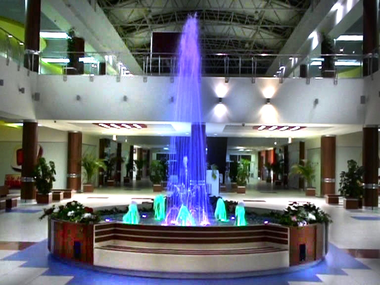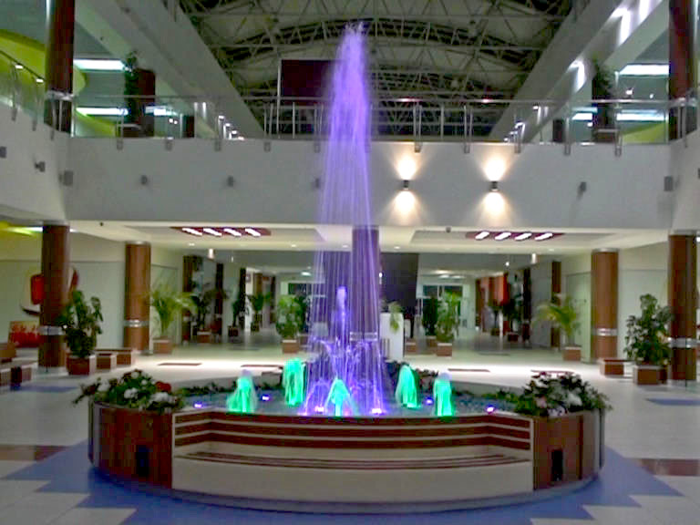Интерьерные светомузыкальные фонтаны могут иметь любые размеры и формы (от 0,5 м в диаметре) в зависимости от размера помещения и его назначения. Такие фонтаны могут устанавливаются в магазинах, ресторанах, кафе, барах, гостиницах, санаториях, культурно-развлекательных центрах и т.д.